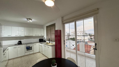 Large 3- bedroom apartment for rent in the heart of Larnaca. Short distance to the Finikoudes Promenade (1km) next to everyday amenities (post office, bank, shopping street, pharmacy etc) Excellent area for short term/ long term rentals. Easy access to the all-main directions, such as Med High, American Academy, General Hospital and the Airport. Property consists of: an open plan living room/ kitchen, covered veranda, Three bedrooms. master with ensuite, family bathroom, Private covered parking and spacious storage(4sq.m)