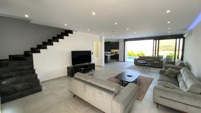 Property consists of: spacious living room, open plan kitchen, guest WC, three bedrooms, master with ensuite, family bathroom. Roof garden. Private pool, garden, covered parking. property is furnished and equipped.