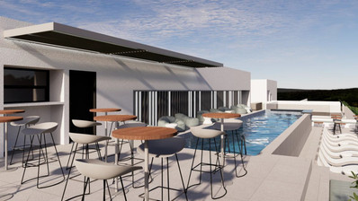 Modern, Sea View 2 - bedroom penthouse for sale in Livadia (Land of Tomorrow area), Larnaca. Cyprua. Complex with common, heated roof top pool, Gym, Sauna, Play Ground, All apartments have sea view. Walking distance to the sea and everyday amenities, short drive to the Larnaca City Center, easy access to the highway and all main roads. The property is on the top floor of a 4 storey building. Consists of: an open plan living room, kitchen, covered veranda, two - bedrooms, master with ensuite, family bathroom(shower), Private, sea view Roof garden, covered parking and storage. Energy Efficiency A