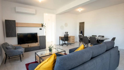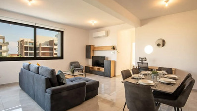 Discover this stylish 2-bedroom apartment located in Livadia, just 500m from the American University. Situated on the 1st floor, this fully furnished property offers a contemporary living experience with a spacious layout and high-quality finishes. The apartment features a fully equipped kitchen, three modern bathrooms, and a bright balcony with unobstructed views—perfect for relaxing moments. With full air conditioning, private covered parking, and easy access to public transport just 1 minute away, it combines comfort and convenience. Only 7 minutes from Larnaca city centre, this home is ideal for modern living in a peaceful yet well-connected location.