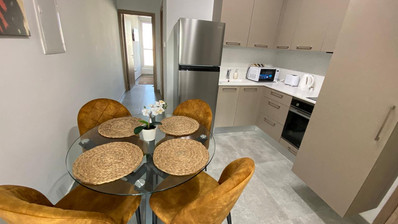 Newly build 1- bedroom apartment for rent in the heart of Larnaca, walking distance to the beach an everyday amenities. Fully furnished and Equipped. Internet and Building Common Expenses included in the price. Property Consists of: Open plan living room/ kitchen, One bedroom, shower room, covered veranda, private parking.. roof garden.